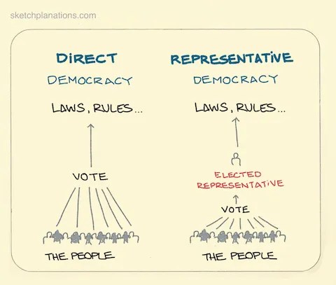 So, you settle on a representative system of government as the best way forward. The next step will be to elect intermediaries that are a fair representation of the population. How can this be done? Are these intermediaries elected from certain social strata’s, demographic categories or geographic area? A you can see, there are challenges and limitations with all three of the above. However, in order to get a reasonable cross section of population in regards to age, education, income and any other variables, you decide to split the population in to geographic zones. Each zone will then have one representative elected to represent the population in that given area.